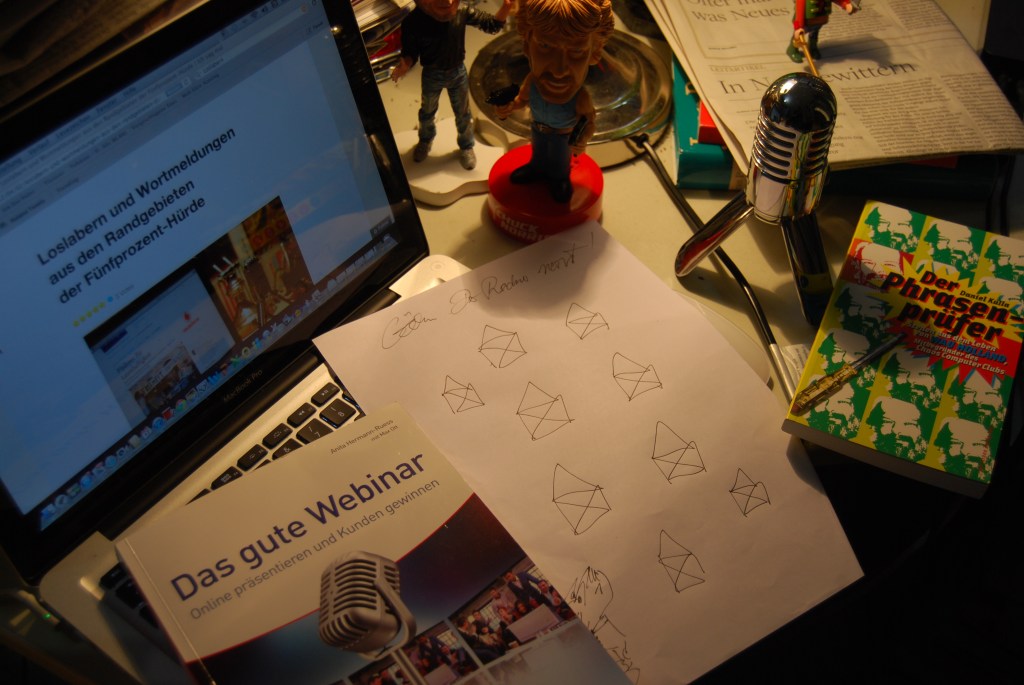 Blecherne Stimmen, verkrampfte Moderation, kaum Interaktion und Referenten, die mit einer Flut von propagandistischen Powerpoint-Folien im sonoren Ton loblabern und wehrlose Zuschauer in den Netzschlaf wiegen: Man nennt das Ganze auch Heizdecken verkaufen über so genannte Webinare. Um uns aus der Flut von belanglosen Online-Präsentationen zu erretten, kommt der Band „Das gute Webinar“ (erschienen im Addision-Wesley-Verlag) von Rhetorik-Expertin Anita Hermann-Ruess und dem Visualisierungs-Spezialisten Max Ott gerade richtig. Ich habe das Werk heute in meiner Kolumne für Service Insiders besprochen. Hier geht es zur Rezension.