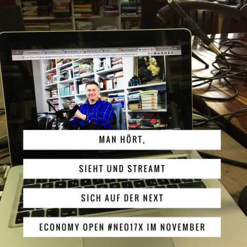 „Im Jahre 2015 fand die Konferenz Next Economy Open erstmals in Bonn als stationäres Konferenzformat als ein Mix aus Barcamp und traditionellen Konferenzelementen statt. Im Jahr 2016 hat der Initiator, der Volkswirt, Blogger und Journalist Gunnar Sohn, der auch Lehrbeauftragter an der Hochschule Fresenius ist, die Konferenz erstmals als verteiltes digitales Format weiterentwickelt. Im Rahmen eines virtuellen Konferenzformates gab es mehrere digitale Konferenzstreams sowie regionale und stationäre Konferenz-Satelliten, die unter dem Dach der #NEO16x live ins Internet übertragen („gestreamt“) wurden. Es ging und geht dem Veranstalter um Paarbildungen zwischen Netzszene und Wirtschaft, um Brücken für neue Ideen, Kombinatorik, überraschende Verbindungen und Erkenntnisse, dauerhafte und fortlaufende Gespräche sowie offene Begegnungen. So werden Netzwerk-Effekte durch dezentralen Subevents initiiert, die…