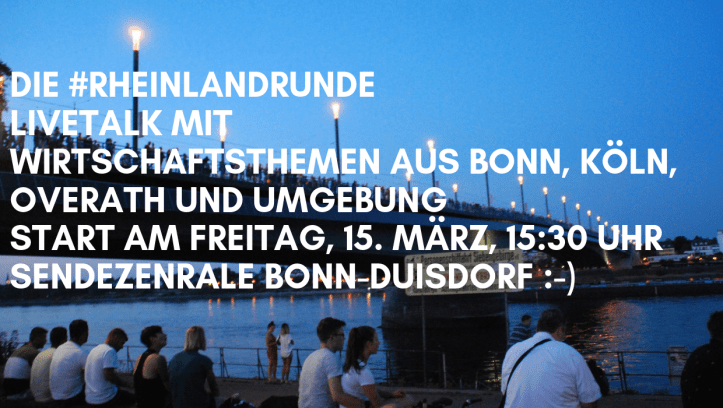 Den Niedergang der lokalen und regionalen Medien und die Auswirkungen auf die Wirtschaftsberichterstattung diskutieren wir am Freitag, den 15. März, um 15:30 Uhr in einem neuen Diskussionsformat: #RheinlandRunde. Ort: Die Sohnsche Sendezentrale in Bonn-Duisdorf, Ettighoffer Str. 26a, 53123 Bonn. Open Space. Mit dabei: Michael Pieck (Pressesprecher der IHK Bonn Rhein-Sieg, Bernd Rützel und Norbert Q. Engelen (coworking4you in Overath). Weitere Teilnehmerinnen und Teilnehmer sind hoch willkommen 🙂 Bitte anmelden via Facebook.