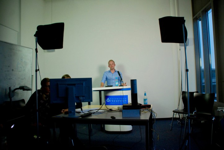Die Haupt-Veranstaltung wird live aus dem temporären Sendezentrum an der Hochschule Fresenius gestreamt. Die Zuschaltungen laufen über Skype.